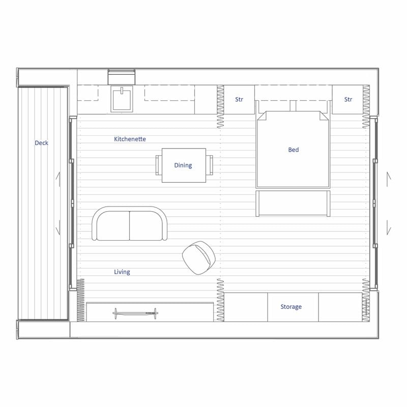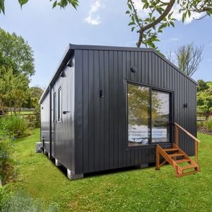 Beautifully simple and thoughtfully designed, the Dandall redefines small-space living. Its soaring gable ceiling and generous sliding doors invite light and openness, while the flexible studio layout offers everything you need. Whether it’s a private guest suite, backyard studio, or minimalist getaway, the Dandall delivers contemporary living on a compact 29.62m² footprint.